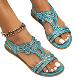 Estas sandálias turquesa com aplicação de pedrarias são a definição de elegância para os dias quentes. Com um design floral detalhado e acabamento cintilante, são ideais para dar um toque glamoroso ao teu look de verão. Confortáveis e femininas, combinam na perfeição com vestidos leves, saias ou calções, garantindo um estilo deslumbrante sem esforço.